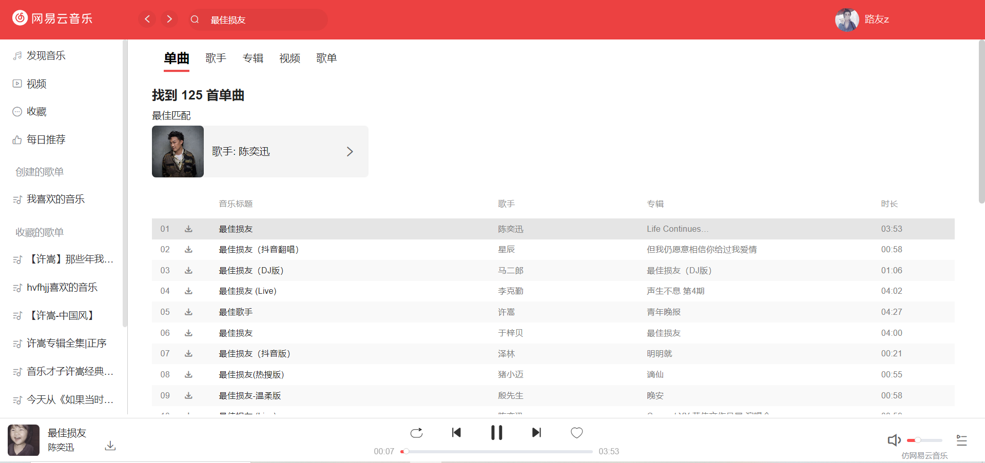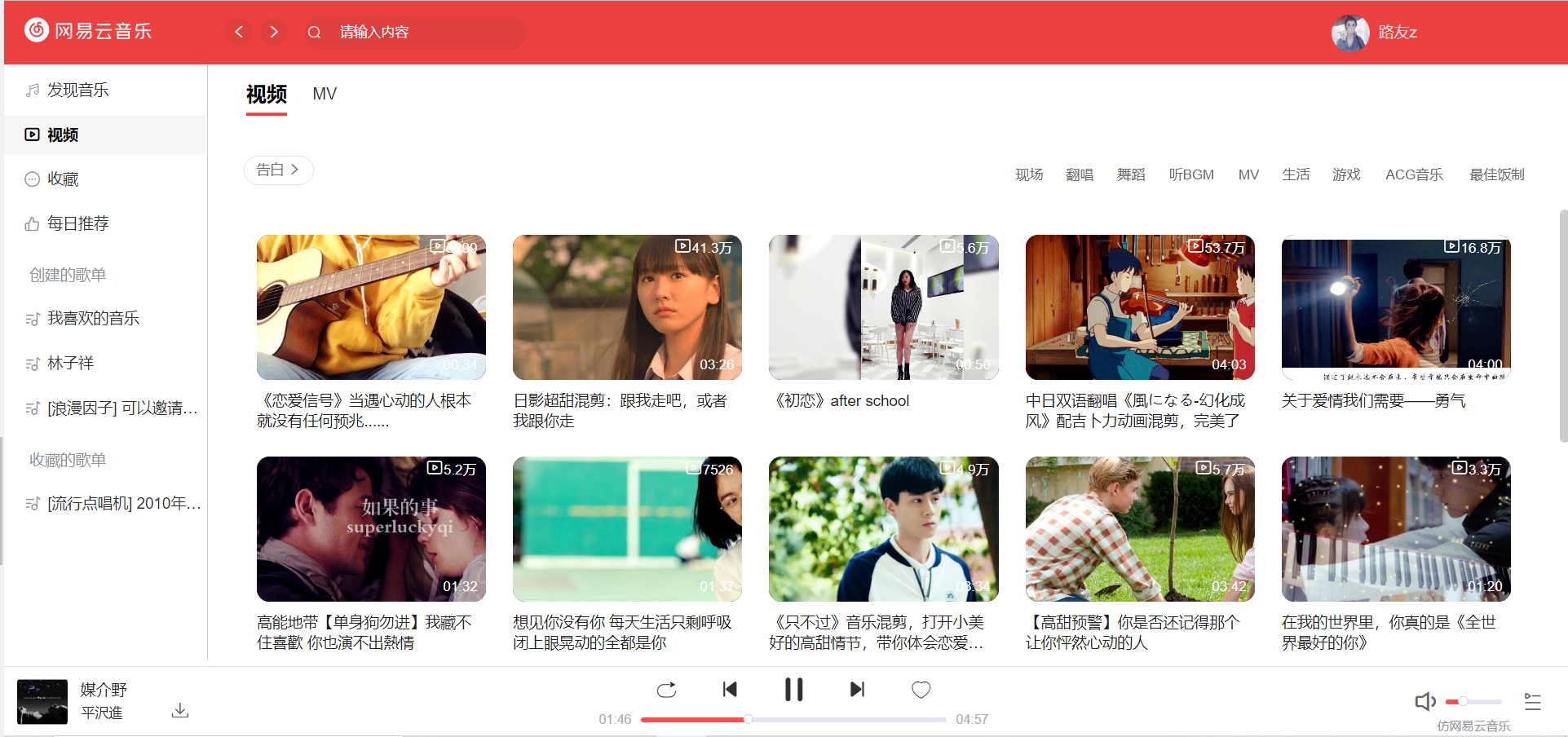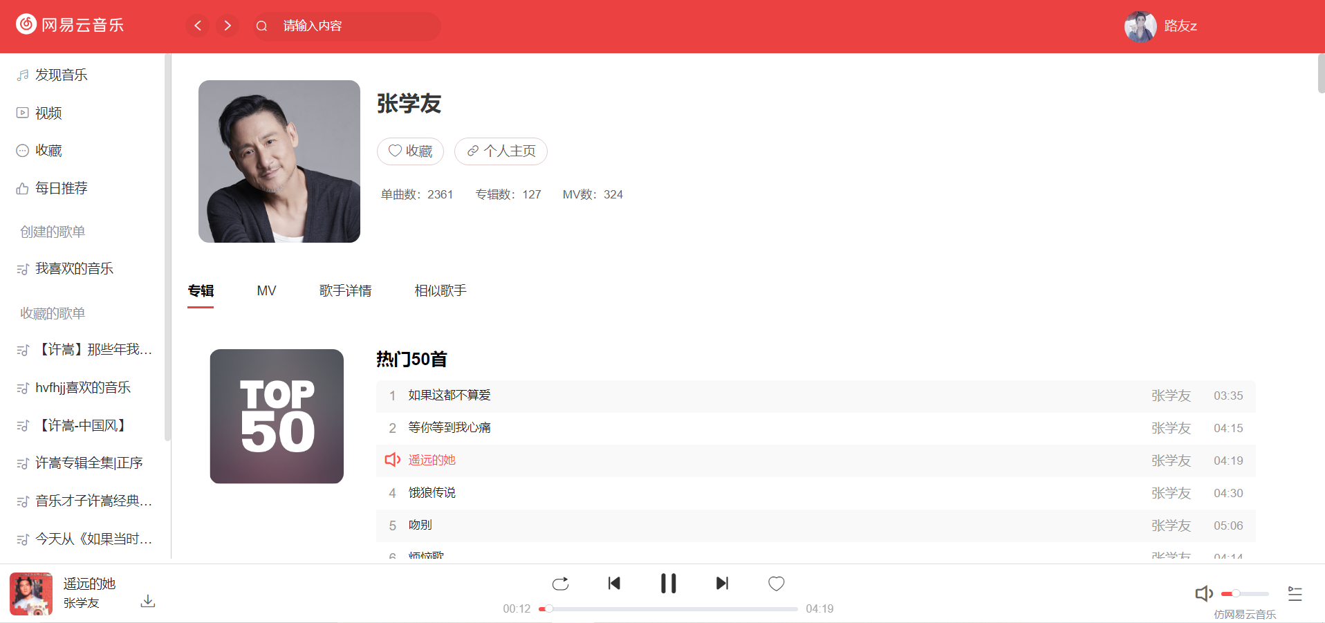 This project replicates the core features of the Netease Cloud Music web app, including personalized recommendations, video display, artist pages, music search, music playback, and download functionality.